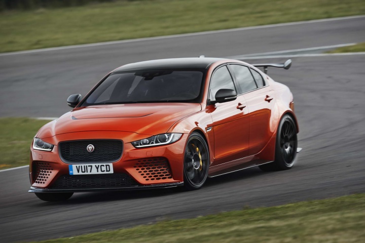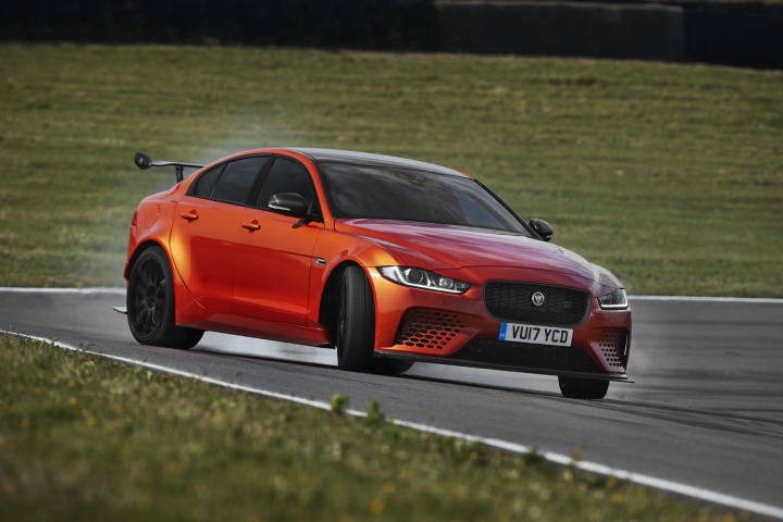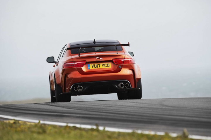 Inside, it's pretty much stock Jaguar XE with sporty add-ons, as you'd expect. There's glossy carbon fibre trim, lots of Alcantara suede, especially prominent on the steering wheel, and a big 'pistolshift' lever for the eight-speed automatic gearbox (which also has paddle shifters behind the wheel). That should make you feel like John Cleland on the way to the shops...