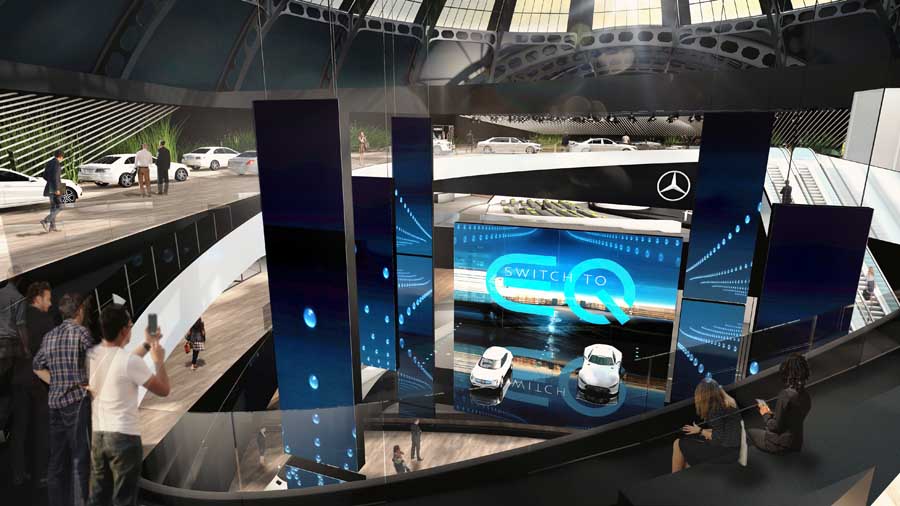 Mercedes never scrimps on the stand size for IAA and it's not just about the sheer numbers of cars that will be present - so far, 400 employees from Stuttgart have been working for more than two months on planning and realising the presentation areas for the premium brand, which will cover more than 11,000 square metres. That includes 970 tonnes of steel, more than 250km of wiring and 6,000 lights installed.