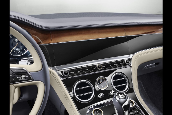 The 20-way adjustable seats get a new diamond-in-diamond stitching, which Bentley says creates the effect of "a floating quilted surface in a sea of leather, which is extraordinarily soft to touch." There's also a new, optional coating for the centre console, inspired by the inside of a Swiss watch and called Cotes de Geneve.