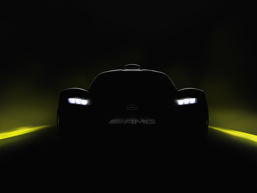 The solitary image reveals a car that has a clear 'Le Mans racer' look, despite the fact AMG is saying it is bringing F1 technology to the road (more on that in a moment), and a roof scoop to funnel air into its mid-mounted V6 turbocharged engine.