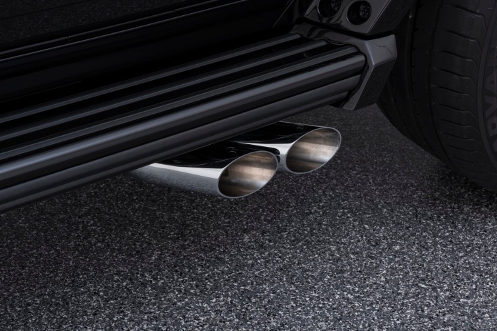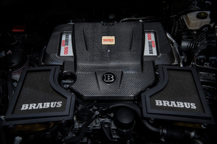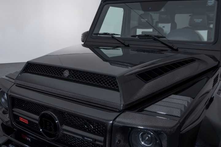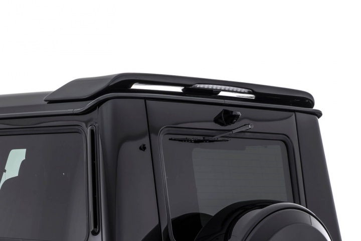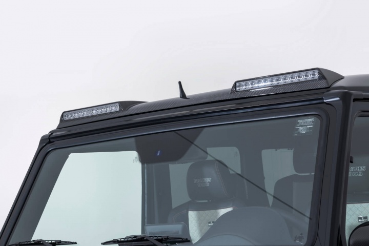 In addition to one of the most overtly macho carbon bodykits ever fitted to any vehicle, Brabus has fitted signature exterior LED lighting to a roof-pod, which comes on with the high-beam headlamps.