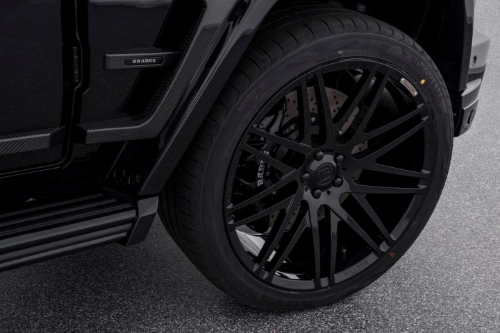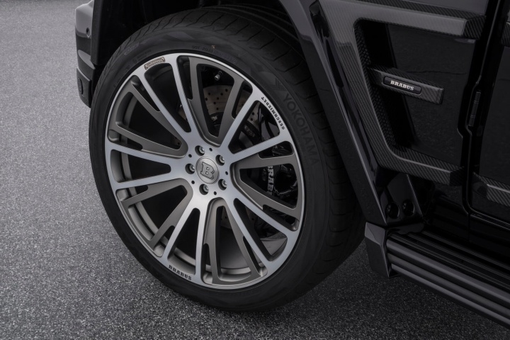 To keep all that in check, Brabus has widened the G-Wagen's track by 120mm, to accommodate the massive 23-inch wheels. These 'Platinum Edition' wheels are shod with specially-made Yokohama tyres, and there are enormous 412mm vented and cross-drilled brake discs (which Brabus says are the largest brakes fitted to any SUV ever). There is also Brabus-designed 'Ride Control' suspension, with adjustable dampers developed for the car by Bilstein. The system is designed to switch, in milliseconds, between aggressively sporty and softly comfortable, depending on what you're up to.