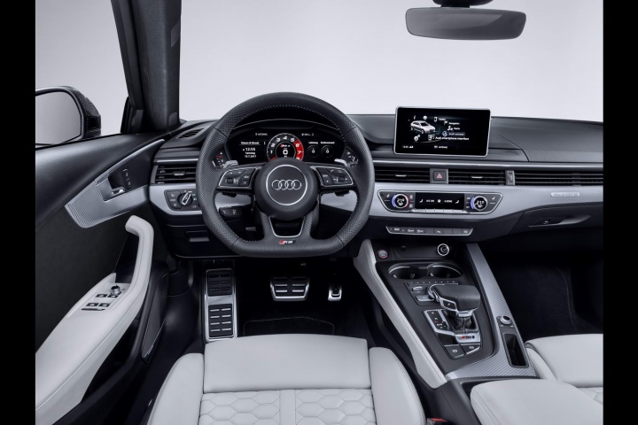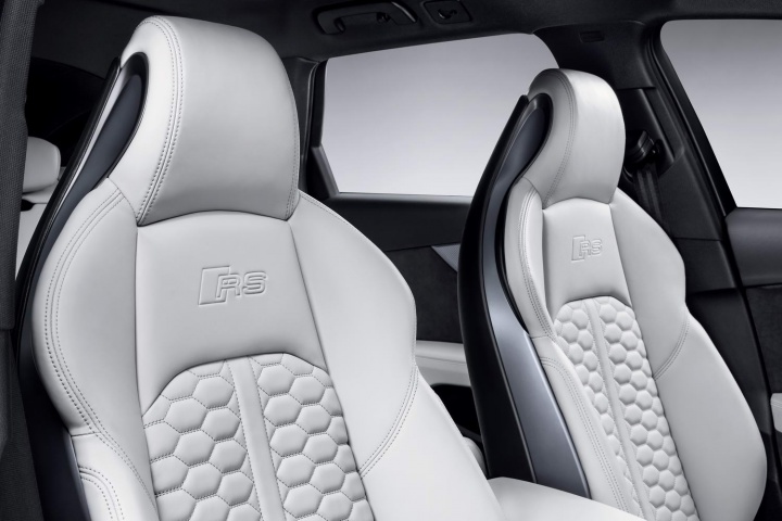 Quattro all-wheel drive is of course standard, coupled with an eight-speed tiptronic automatic gearbox. Performance is understandably epic; top speed is 249km/h (280km/h when de-restricted with the RS Dynamic package), and the 0-100km/h time is 4.1 seconds. Ceramic brakes, RS Sport Suspension Plus and a trick rear differential are on the options list.