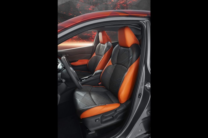 The theme continues inside, with more violent orange detailing, as well as sports seats. Created by Toyota's ED2 European design studio, the aim was not to effect major changes on the C-HR's appearance, as chief designer Lance Scott explains: "What we wanted to do was almost to purify or concentrate the unique value of the Toyota C-HR and see how we could give it further emphasis by using a new and unique colour and interior trim execution. The challenge was not to stray away from the qualities that define the car, but to add to them in a fresh and original way."