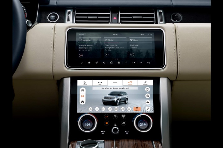 Inside, the cabin has been updated with the new 'Blade' two-tier touchscreen, as already seen in the Velar and Range Rover Sport. This allows you to keep navigation instructions on the upper screen, while adjusting infotainment or other systems on the lower one. The Range Rover can now also be had with the new 12-inch digital instrument pack, and a new head-up display that projects to a longer focal length, and therefore is designed to be less tiring to look at.
