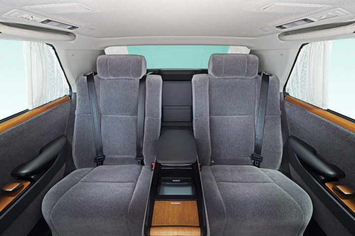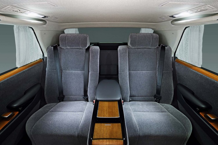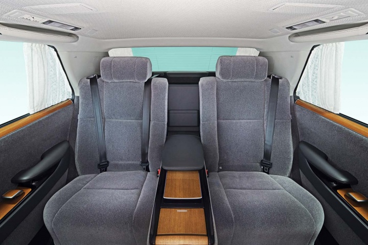 In the back, the seats recline and massage, there are extending footrests, and an LED screen between the seats so that rear seat passengers have full control of air conditioning, audio, more. Toyota says that the rear is equipped for both business and pleasure with a writing table, reading light, rear seat entertainment system with a large-sized display, and a 20-speaker premium audio system.