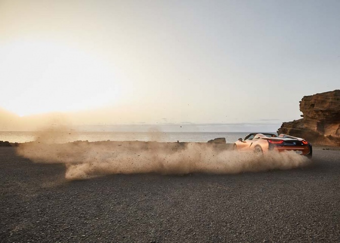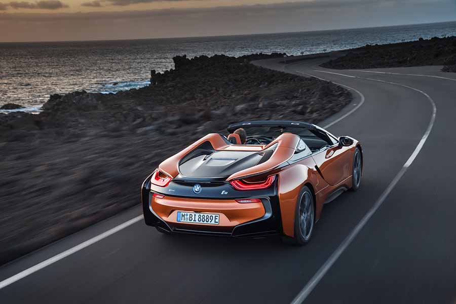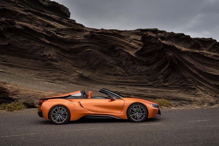New colours are offered for both the Roadster and the Coupe, which are E-Copper metallic and Donington Grey metallic, while there are additional interior finishes too. The tile-design BMW Navigation Professional is drafted in, as are the BMW Display Key, Driving Assistant including Surround View and a mode 2 charging cable. Options will include Head-Up Display, BMW Laserlight with BMW Selective Beam and acoustic pedestrian warning. About the only external visual difference between the Coupe and Roadster i8s is model-specific badging on the rear and on the C-pillar.