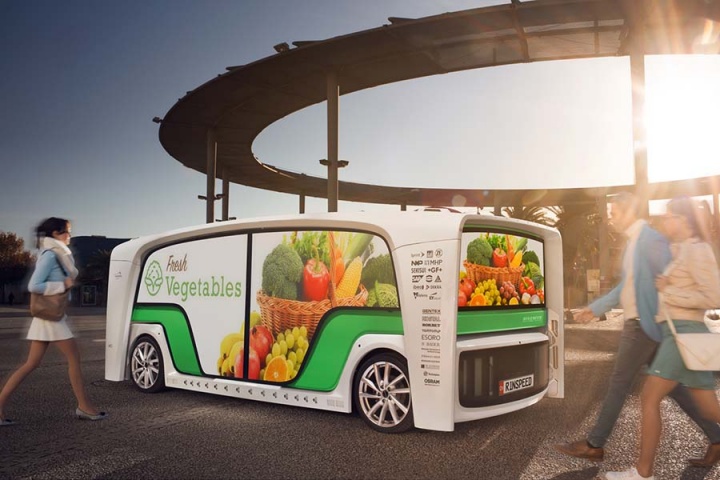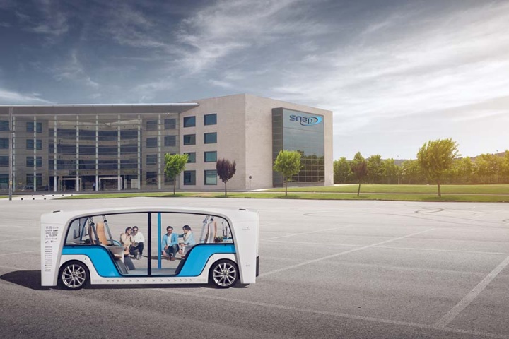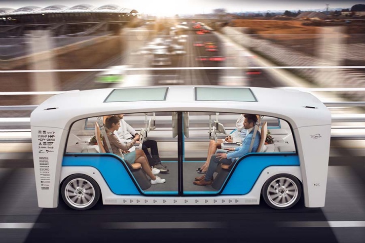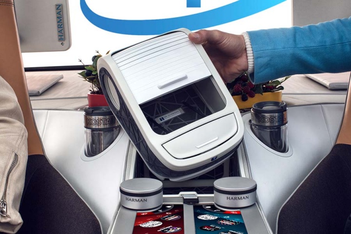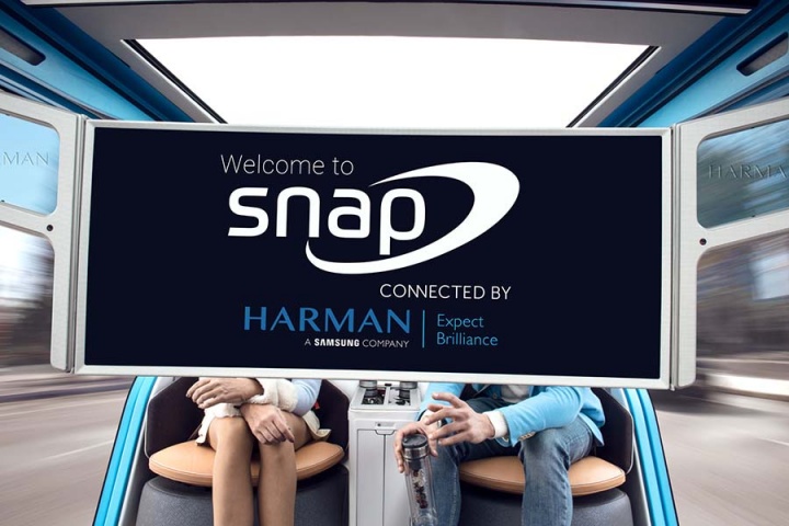 The Snap is absolutely stuffed with tech. The sophisticated Lidar sensors from Ibeo in Hamburg ensure that obstacles on the road are detected by means of real-time measurement of the light reflections. The Harman Autonomous Drive Platform that is part of the skateboard makes safely moving through city traffic possible. It uses the NXP BlueBox, a sensor fusion solution. In turn, the Smart Antenna, jointly developed by NXP and Harman, ensures safe communication to the world outside as well as a high-speed connection to the Harman Ignite Cloud Platform. With 5G, Car2X, radio tuner, BT, and WiFi, it covers the entire spectrum of wireless networking possibilities.