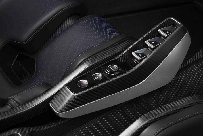 Like the chassis of the car, the doors are constructed of carbon fibre and those glass panels mean the release mechanisms and window switches have to be housed alongside the engine start button in a carbon fibre console above the driver's head. Lots and lots and lots of exposed carbon fibre reminds the lucky occupants that they're in the Senna, rather than - say - the piffling 720S, and customers can choose from Alcantara or leather to cover the seats, fascia and side airbags. All other interior trim is removed, to save weight and show off the construction of the doors.
