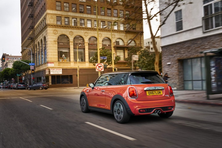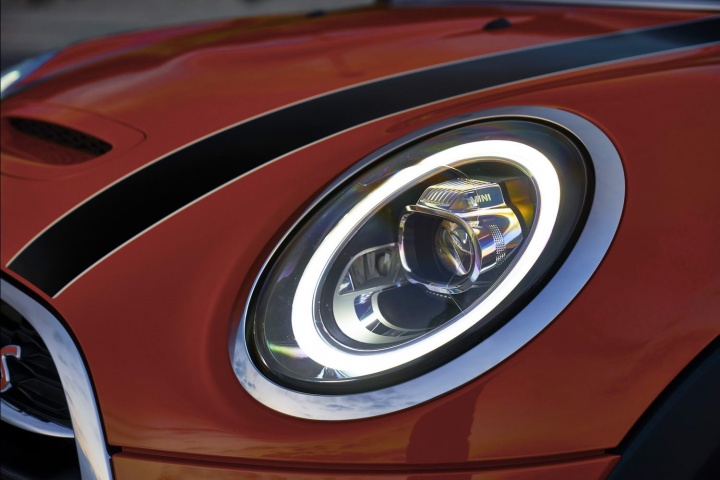 Blink-and-you'll-miss-it stuff here, as MINI has wisely decided not to tamper too dramatically with a winning formula. The headlights are where the main work has gone on, as the standard halogen items get a black insert to give them a slightly different appearance, but available as an option now are Adaptive LED headlights with a Matrix function for high-beam; this is one of those high-tech anti-dazzle systems that can blank out individual LEDs, to maximise illumination and minimise annoyance to other road users. Further luminous goodness comes in the form of ring-shaped LED daytime driving lights and indicators - and panic not if you're looking at the rear light clusters with a rising sense of dread, as the objectionable Union Jacks are not standard fit items; individual markets can decide if they want them or not and MINI Ireland has confirmed that it will not be taking them. No surprise there...