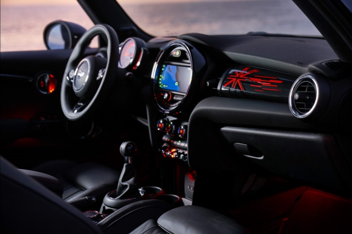 Principal updates inside are new seat surfaces, interior trims and colour lines, such as Chester leather trim now being available in a fresh hue, Malt Brown. MINI Yours Interior Style Piano Black now comes with illumination, but if you don't think that's enough visual razzmatazz for the cabin, then get involved and busy with the MINI Yours Customised programme, which allows you to put pretty much any design you like into various trims and light sources, making the car as personal to you as you could possibly want.