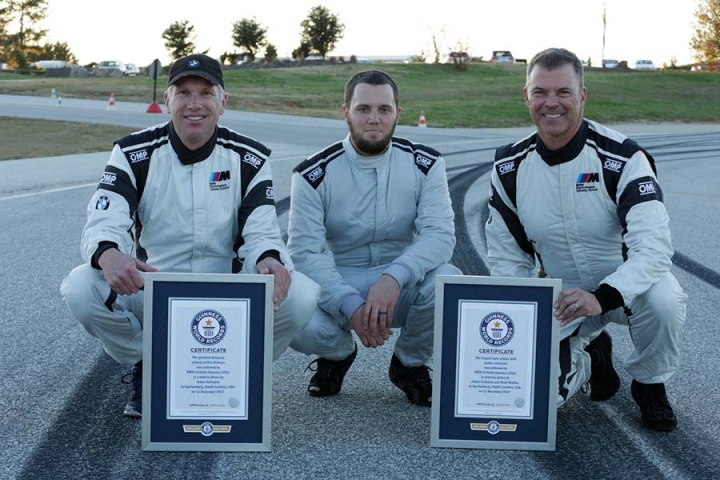 So, not only has BMW taken one world record, and invented drifting-car-to-drifting-car refuelling, it's also taken the record for the longest two-car drift, at 79.3km, or 49.2 miles.