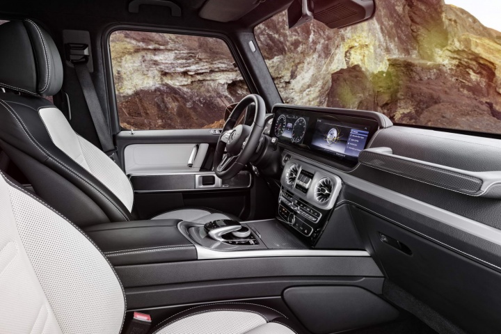 For the moment, the only engine option will be the G 500 turbo V8 petrol, with 422hp, 610Nm of torque, fuel consumption of 11.1 litres/100km (25.4mpg) and CO2 emissions of 263g/km. That drives all four wheels (of course) through the nine-speed 9G-Tronic automatic gearbox. It won't be the only engine option for long - AMG V8 and V12 models, and a diesel version using the new straight-six engine from the S-Class are all planned.