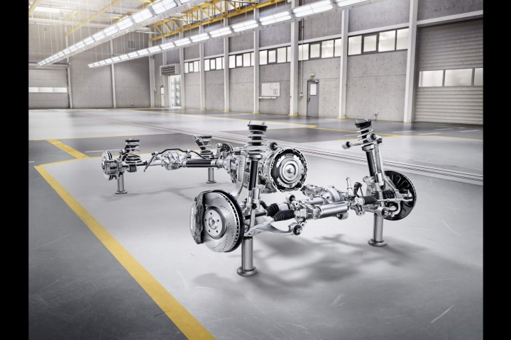 Suspension is now fully-independent at the front, with double-wishbones, while the rear has a more traditional solid beam axle. Everything's been packaged around giving the car a maximum possible ride height, which now stands at 270mm. The maximum wading depth is also increased, by 40mm to 700mm, while it has a 30-degree approach angle, a 26-degree break-over angle and a 31-degree departure angle. These are all serious off-road numbers, and remember that this is the basic version. Mercedes has more extreme off-roading options in mind for later...