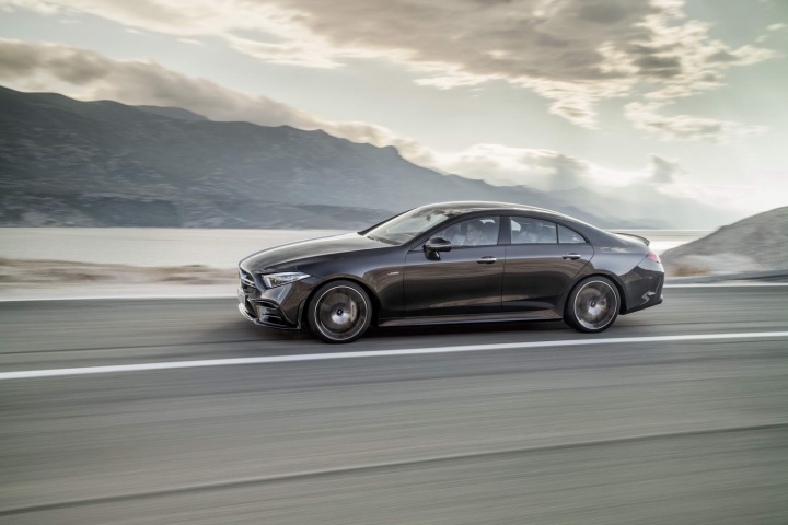 Like the Mercedes-AMG V8s, the CLS 53, E 53 Coupe and E 53 Cabriolet all wear twin-blade radiator grilles, an 'A-wing' front apron, AMG-specific side skirts and a rear bumper that houses a diffuser plus round exhaust pipes in high-gloss chrome. Of course, the CLS is of special interest, because it's the first confirmed, proper performance version of the recently announced third-generation model. It can tick off 0-100km/h in 4.5 seconds and go on to 270km/h, if fitted with the AMG Driver's Package, while returning 8.4 litres/100km and 200g/km of CO2 emissions. The CLS also has side air curtains in the front apron, mirrors positioned on the doors in a manner not dissimilar to the AMG GT and a set of aerodynamically optimised 19-inch light-alloy wheels (20s are an option).