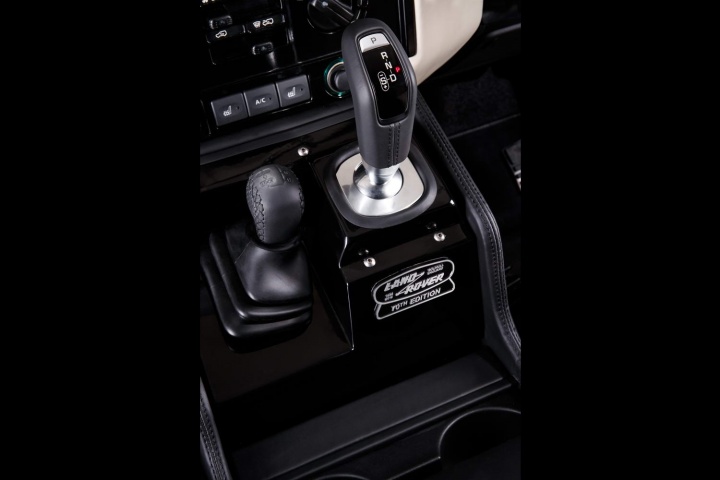 It's the Defender's familiar bluff and upright dashboard inside, complete with switchgear that hasn't changed much in decades. The 70th Edition V8 benefits from full Windsor Leather interior trim for the aforementioned dash, as well as the door panels, headlining and Recaro sports seats, while Land Rover's own Classic Infotainment System is fitted. You might also notice the pistol-grip gear lever for the automatic gearbox, this being an item you'd find in Jaguar Land Rover's much more modern products.