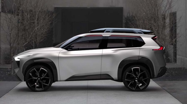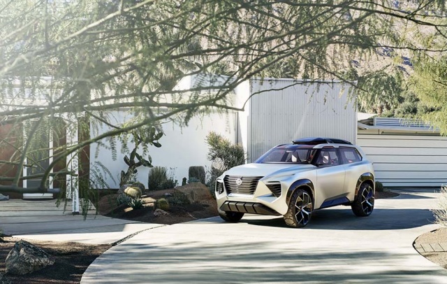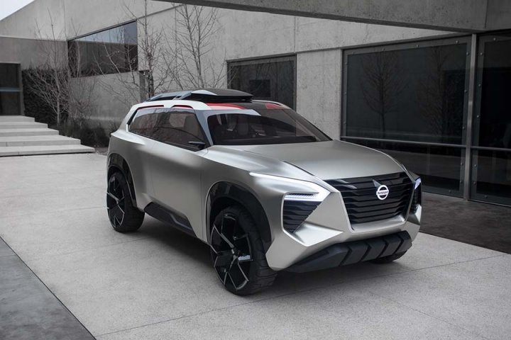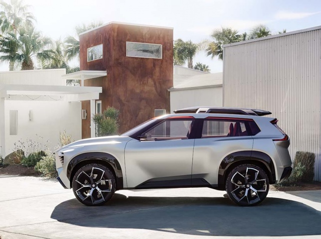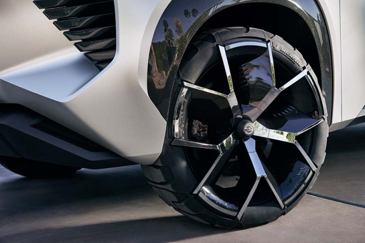 Outside, it's all edgy futurism but you need to take note of the U-shaped highlights - such as the headlamp clusters - and the 'bold evolution' of the company's signature V-motion grille to get an idea of what Nissans heading to showrooms in the coming years will look like. Show-car conceits include a retractable roofbox, taillights designed with inspiration from Japanese woodwork, and a set of 21-inch aluminium-alloys with the all-terrain tyres' tread physically laminated onto each wheel itself.
