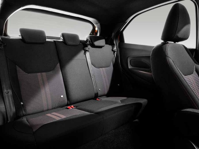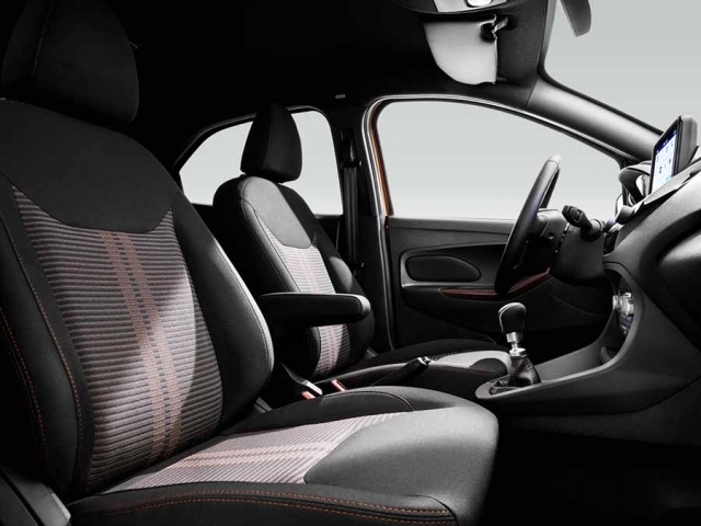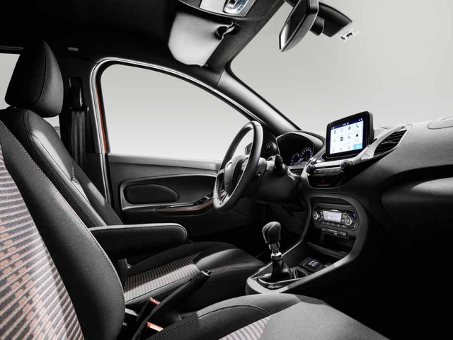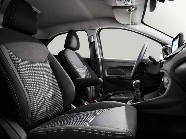 While all cars in the range feature a grained finish on the instrument panel, durable trim materials in a dark charcoal shade and a number of chrome accents around major switches, handles and knobs, the Ka+ Active also features 'Active'-embossed scuff plates in the sills and a unique-to-the-variant leather steering wheel with cruise control functions and Sienna Hazel stitching. That colour is repeated on the seat upholstery and the stitching found on the chairs, while all-weather mats for the cabin and boot are provided.