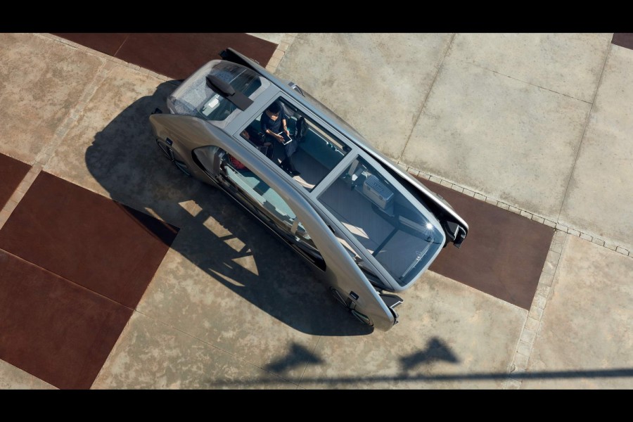 The Renault EZ-GO is a massive, trapezoidal, self-driving glass pod on wheels - well, that would be the simple summation. Its shape is designed to help it fit into a city, with the vehicle measuring 5.2 metres long, 2.2 metres wide and 1.6 metres tall with the front hatch (more on this in a moment) closed. The wheelbase is 3.8 metres long - there are some current city cars that are shorter in their entirety than that. The design aims to provide the widest possible field of vision for the autonomous system's sensors, while simultaneously drawing masses of light to the cabin.