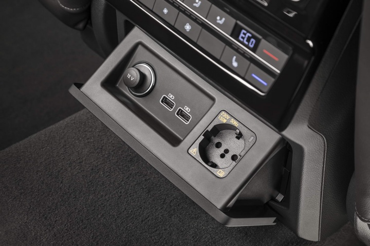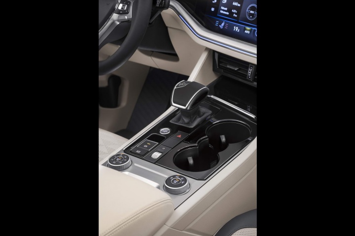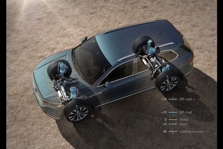 The optional air suspension features several different ride heights compared to Normal or Comfort settings in the Driving Mode controls: 50mm lower, for loading only when stationary; 25- to 35mm lower at speeds of 120km/h and above, to maximise fuel economy thanks to improved aerodynamics; 25mm higher in 'Off-Road' mode; and, last of all, the body gets jacked up by 70mm for the ultimate 'Special Off-Road' setting. Choosing air support for the chassis also improves the front/rear departure angles from 25 to 31 degrees, the breakover angle from 18.5 to 25 degrees, and the maximum wading depth from 500- to 580mm, so if you're a keen off-roader, you'll need the Volkswagen on air suspension.