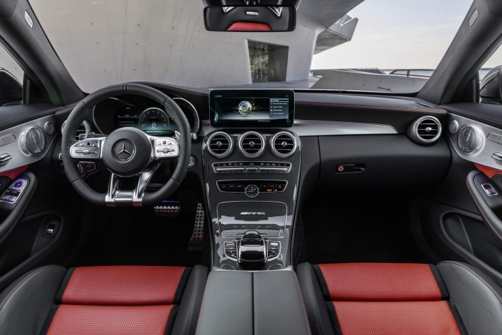 Much of the Artico man-made leather and Dinamica microfibre goodness that has always marked out the C 63 family continues, so we'll focus on the changes alone inside. Anthracite open-pore oak wood, open-pore walnut and longitudinal-grain aluminium for the doors are new finishes that are now all available, while there's a choice of black open-pore ash wood for the centre console. Further options include AMG trim in carbon fibre/light longitudinal-grain aluminium or matte silver fibreglass are offered.