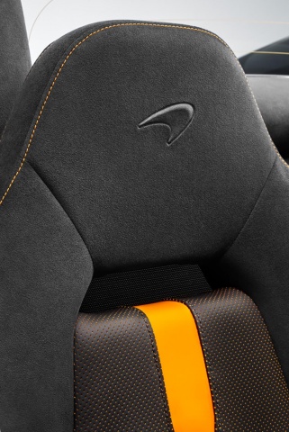 So, the car in the photos is Onyx Black, with matching roof, 'Stealth' finish alloy wheels, with dark-finish McLaren logos and bright orange McLaren 'Papaya' brake calipers. Inside you get Carbon Black Alcantara, McLaren Orange nappa leather, McLaren Orange perforated nappa leather seats with contrasting stitching, and even leather sill finishers.
