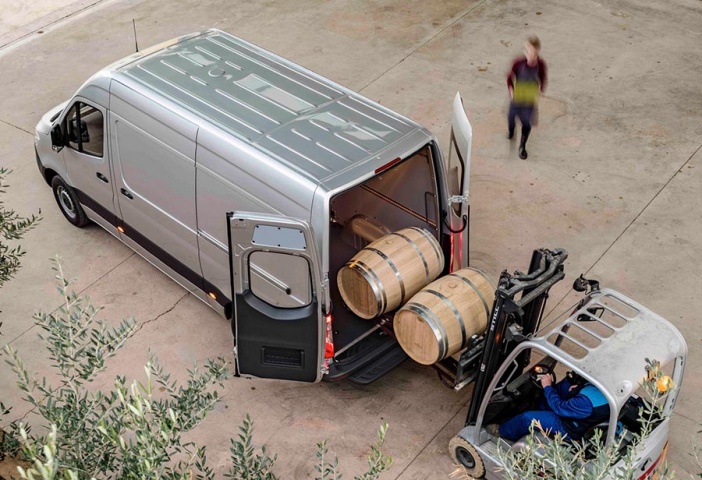 Of the conventionally-engined versions, the front-wheel-drive models save around 50kg compared to a rear-wheel-drive version, all of which can be added to the maximum payload. Front-drive models will also have a lower rear loading height. Maximum payload, depending on the model, and your driving licence, is up to 3.1 tonnes. Single rear tyre models (and there's a special heavy-load version of that Sprinter) have enough space in the back for a standard pallet to be slotted in sideways.