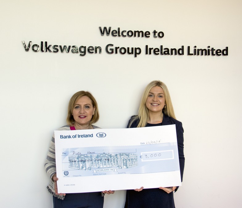 Volkswagen has just handed over a cheque for €3,000 - proceeds from the sale of the Volkswagen Snapshot Calendar - to Pieta House, the Irish charity that specialises in helping those who have had suicidal thoughts or who self-harm. The donation was presented to Maria Byrne from Pieta House by Niamh Gaffney, Marketing Communications Manager of Volkswagen Ireland.