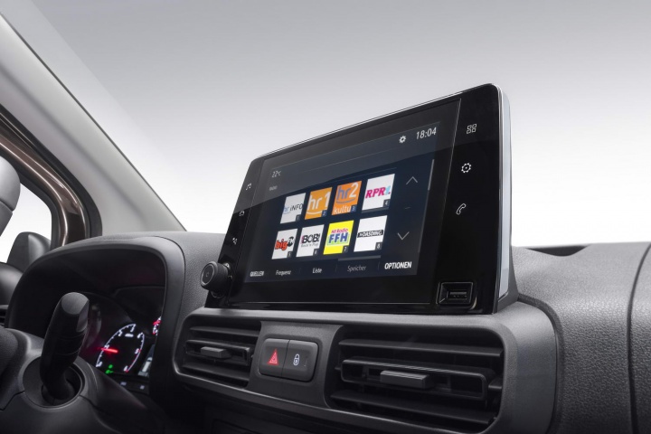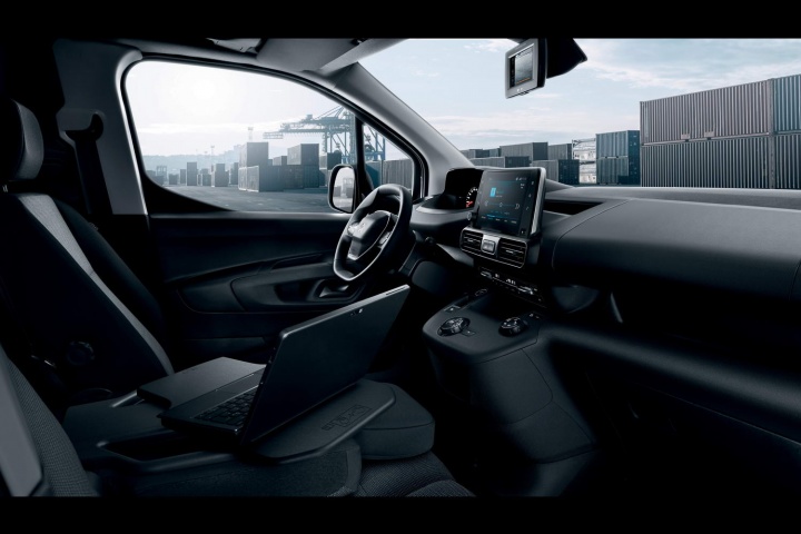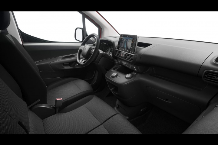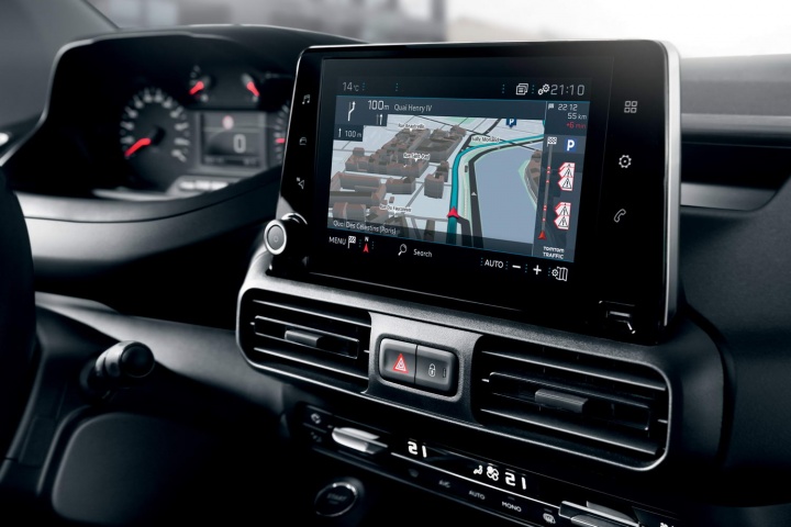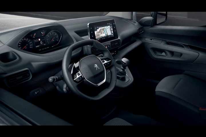 The Peugeot Partner gets the same small-wheel, high-instruments layout as Peugeot's passengers cars, while the Citroen and Opel have more conventional layouts. All three can be had with a big eight-inch central touchscreen, and a heads-up display is available too.
