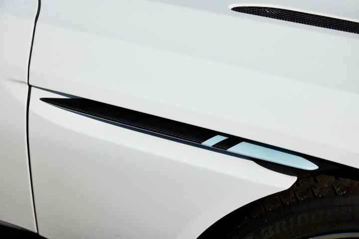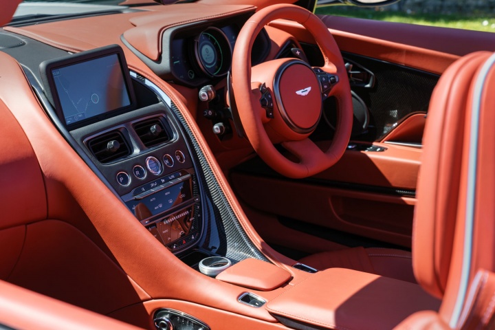 Last year there was a Henley Royal Regatta DB11 coupe, and this year it's the Volante convertible's turn. It gets a striking 'White Stone' paint finish, set off by a black convertible roof, forged gloss black diamond turned wheels, dark-finished brake calipers, lots of exterior carbon fibre, dark finishes for the grille and bonnet vents, and smoked tail-lights.