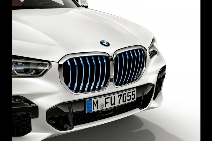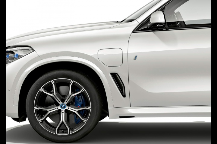 Oddly, BMW didn't mention the exterior detailing of the X5 xDrive45e in its press release, so we only have the images to go by. This particular model appears to share a lot with the regular X5 M Sport models, with a few extra iPerformance badges, blue detailing in the high-tech lights, grille and unique wheels, plus of course the extra flap in the front wing for accessing the charging port. Interestingly, the centre of gravity of the hybrid X5 is lower than that of conventional versions due to the positioning of the battery pack.