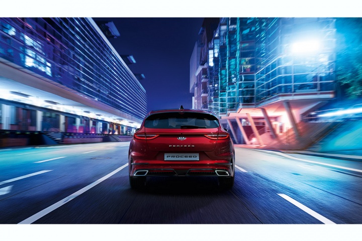 Befitting its positioning in the line-up, the Kia Proceed is lower (by 43mm, with 5mm less ground clearance) and longer (by 5mm when compared with the Sportswagon) than the other Ceed models and, in terms of body panels, it shares only its bonnet and front wings with the five-door hatch. The 'ice cube' LED daytime running lights up front are standard and at the side you'll spot the angled chrome 'Sharkblade' design feature, first used on last year's Kia Proceed Concept car. The rear is completely different to the other Ceeds, too, with full-width lights and a steeply raked window. A range of 17- and 18-inch alloy wheels will be available, along with a choice of 10 paint colours.