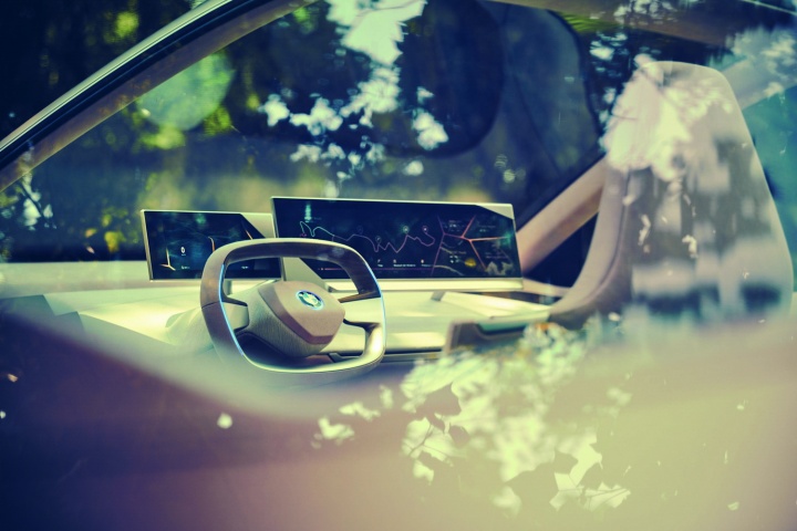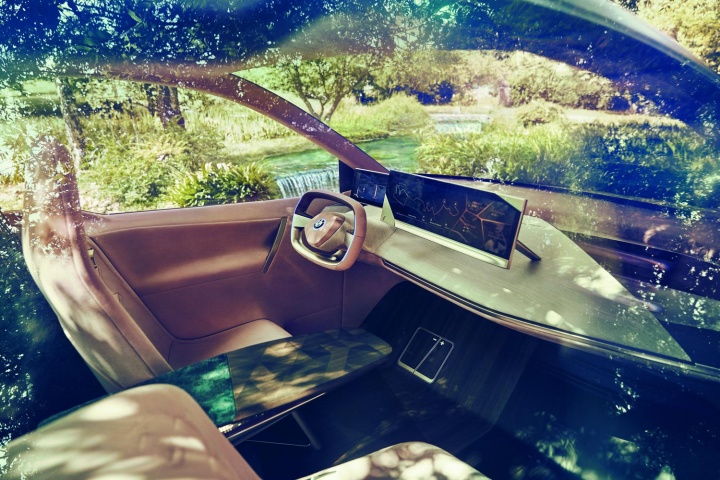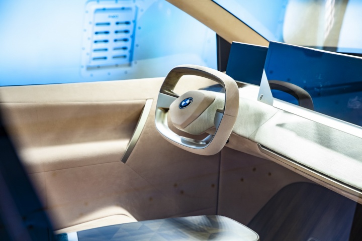 Inside, the ethos here is 'Shy Tech'. A cursory glance around the cabin reveals a complete absence of buttons and other switchgear. That's because everything on the hyper-connected, autonomous BMW is controlled by hand gestures, some very impressive control surfaces (which we'll come back to in a moment) and an Intelligent Personal Assistant, which switches on when you say 'hey BMW...' while seated inside the cabin. To that end, there are just two big screens on the dashboard - and, somewhat surprisingly (and hearteningly), a steering wheel. Intriguingly, while BMW says this fully autonomous car (which proves its worth by driving itself off its display stand midway through a BMW executive's presentation, silently moving a few feet forwards and then applying a bit of left lock to sidle up beside the happily oblivious human spokesperson) will be ready for market in just three years' time, Fröhlich is pulling no punches about what you'll actually get in the showrooms: "Automated driving is a huge challenge and it will not happen in all areas of the world at the same time. There are a lot of legal and regulatory hurdles to clear before autonomous driving happens all over the world, so we are predicting more like Level 3 autonomy being widely available in 2021."