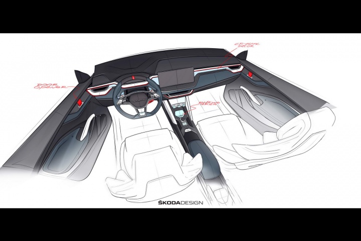 Interestingly, the wholesome ethos of the Skoda concept car is not just linked to its PHEV drivetrain, but also its interior - as it uses vegan and sustainable materials to make the cabin a green (in ideology, not necessarily colour) place to sit. A carbon textile made from 100 per cent recycled polyester is used for the upper part of the floating Alcantara seats, for instance, which bear the Czech national flag in their side bolsters. The floor mats are made of Pinatex, a textile that is made by extracting fibres from the leaves of a pineapple tree.