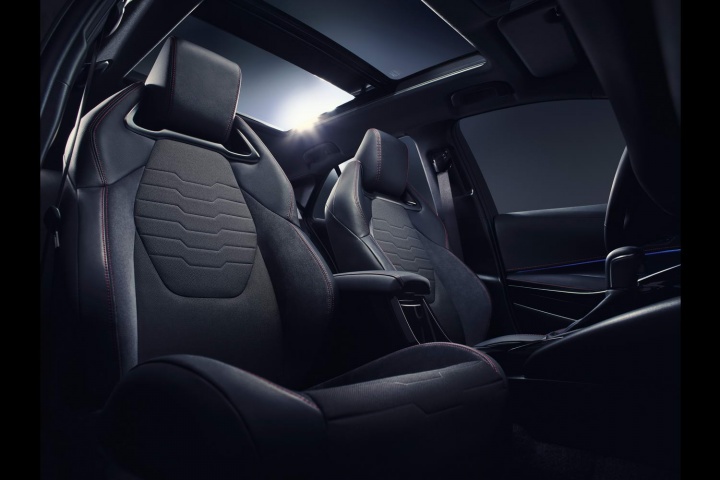 Good news, here - the superb cabin of the C-HR crossover has been used as the benchmark for the cabins of the Corolla and its Touring Sports sibling. So, while the interior aims to 'offer customers sensory quality of the highest order', let's focus on the more practical stuff. The instrument panel is 24mm narrower, aiming to improve the feeling of spaciousness within. Meanwhile, the centre console has widened by 42mm and moved up by 22mm, to improve ergonomics and wrap around the driver. Revised front seat designs aim to provide greater occupant comfort, with sports seats an option on higher-spec models.
