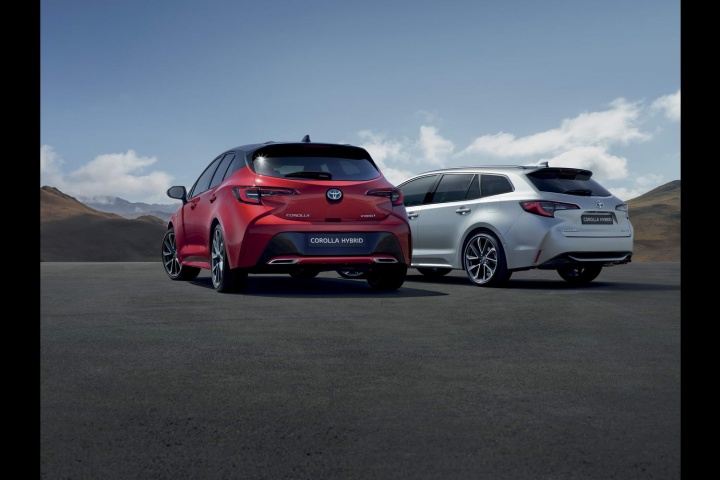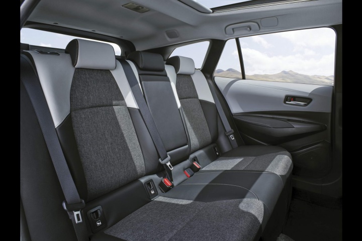 Time to reference the C-HR again, because the Corolla twins use both powerplants currently found in the edgy crossover. That means a 1.2-litre turbocharged four-cylinder petrol engine with 116hp kicks things off, while the 122hp 1.8-litre hybrid drivetrain is the next step up; Toyota says it has worked on the 1.8 to make it quieter, cleaner and more efficient. So far, so familiar.