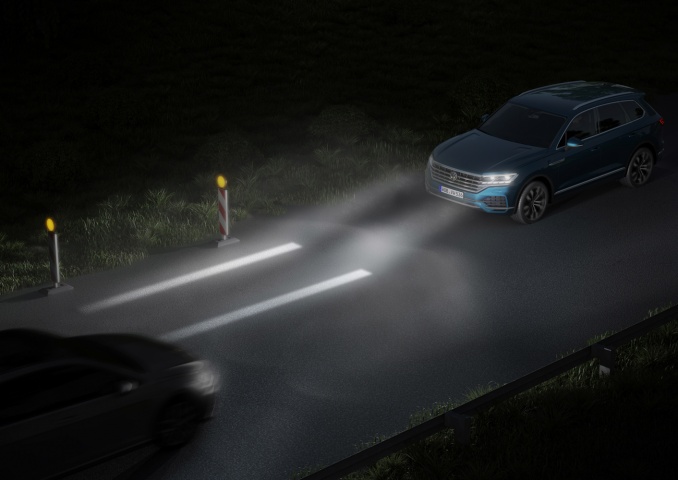 So, for example, when fitted to a Touareg, these new lights will be able to project a box onto the road ahead of the car, which shows the driver the vehicle's precise width, enabling them to better judge tight gaps such as narrow lanes and roadworks. The lights will be able to also take account of things like trailers, and they're clever enough to be able to follow the curves of corners.