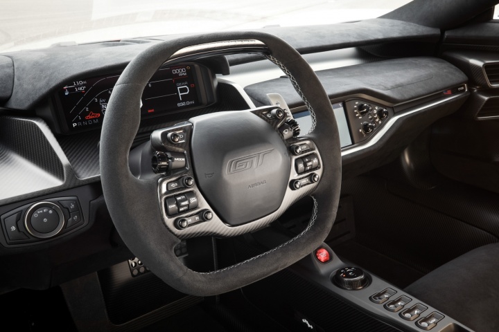 Called the Carbon Series, Ford reckons that this road-going version of the GT is the closest you can get to the actual race car, while still being able to tax it. You can still get it with such fripperies as air conditioning, SYNC3 infotainment, and a radio but the cupholders have been removed so, we guess, bring a bottle or something.