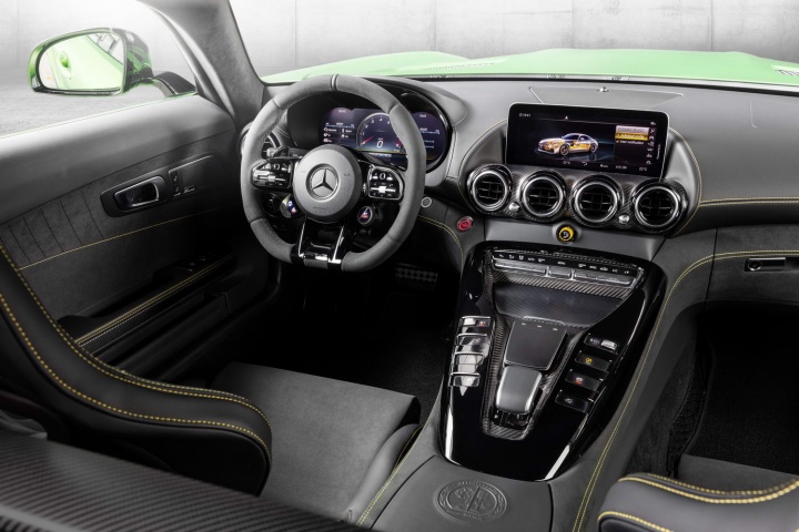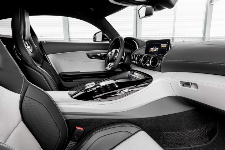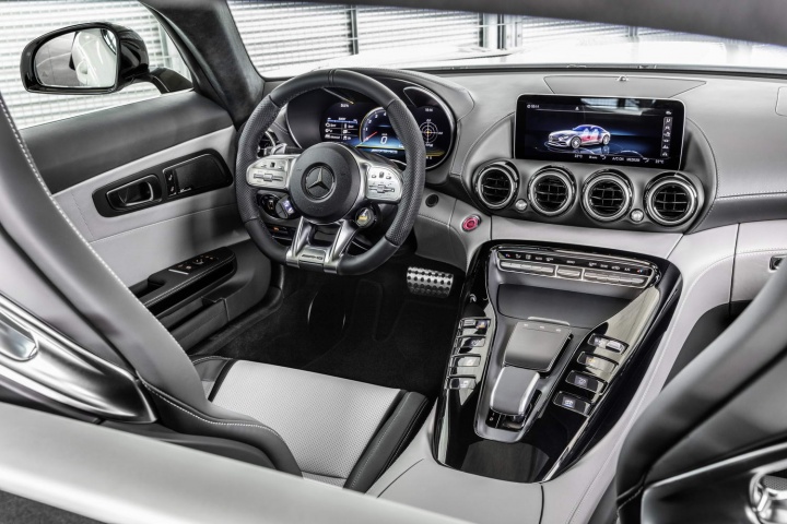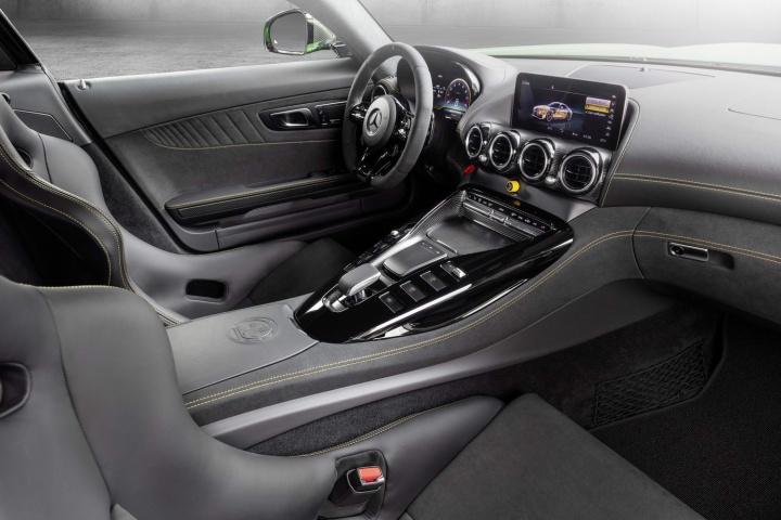 The standard, updated AMG GT model gets a lot of that too, along with special buttons on the central screen for chassis, stability control, exhaust and rear spoiler systems.