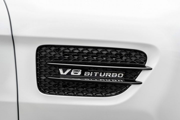 Keeping that storming V8 engine under control is an uprated ceramic braking system, which features black-painted calipers mounted behind the lightweight AMG Performance five-double-spoke forged wheels, which are painted titanium grey.