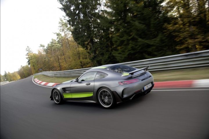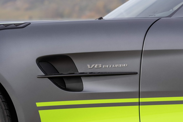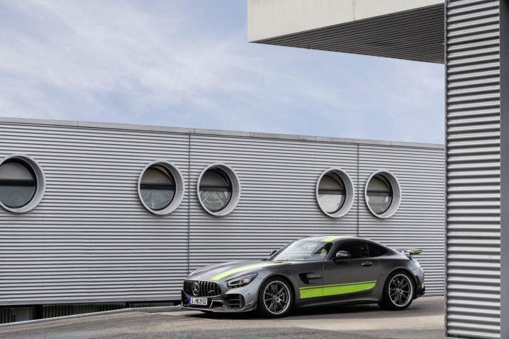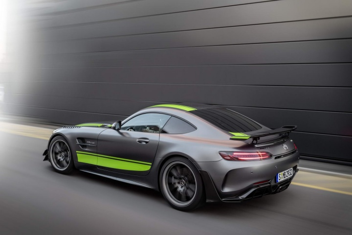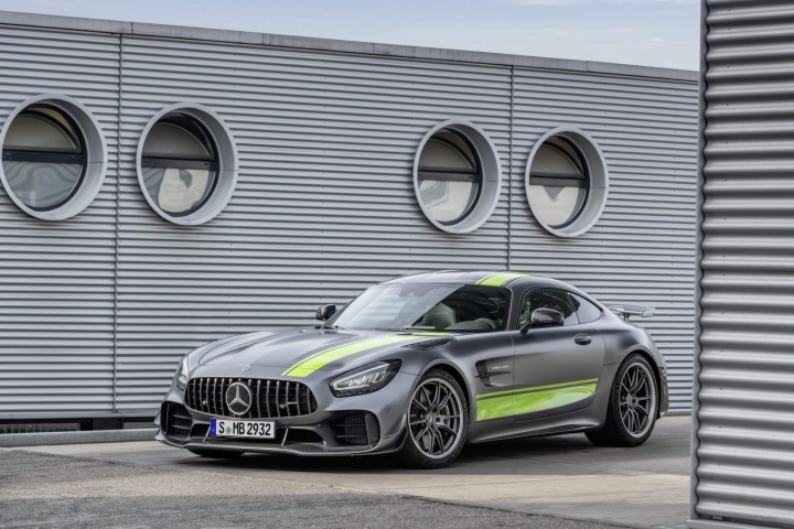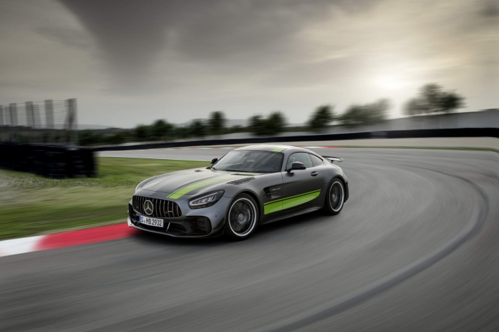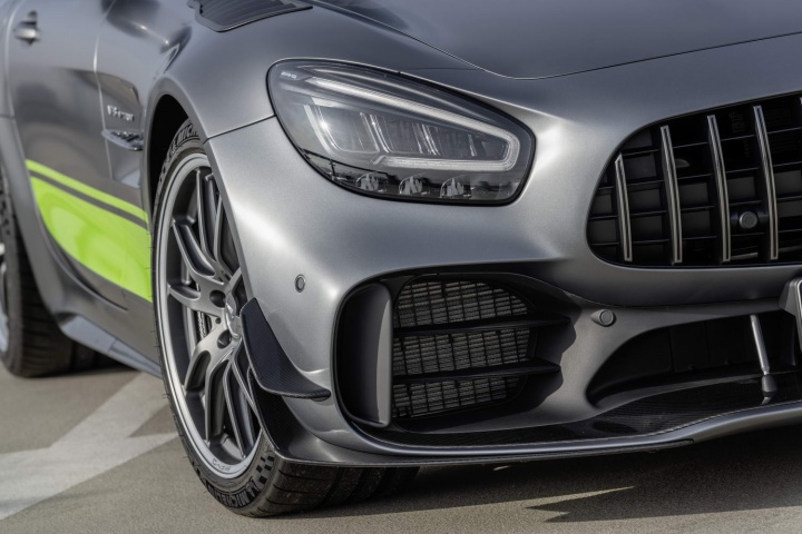 Not surprisingly, this builds on the existing, raging-hot GT R version, with a 585hp version of AMG's mighty 4.0-litre twin-turbo V8 engine. The Pro version gets a new front end, with a deeper bumper, bigger air intakes and a huge racing-style splitter, held in place by extra metal struts.