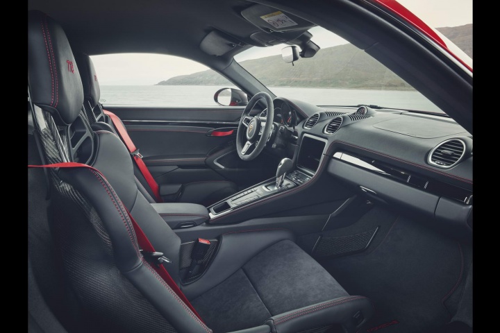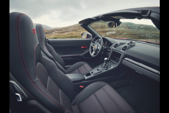The T (which stands for Touring) models also get a simpler cabin layout, including black door pulls in the door panels and sports seats with electric two-way adjustment, black Sport-Tex centre sections and the "718" logo embroidered on the headrests.