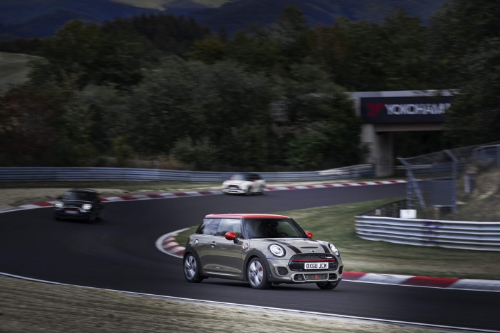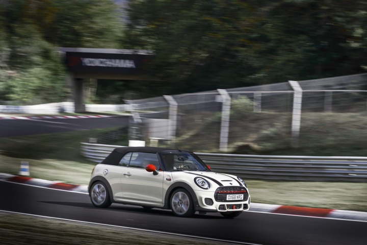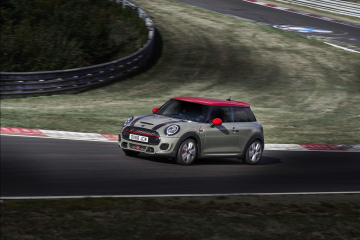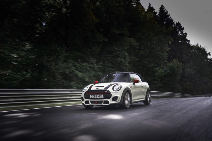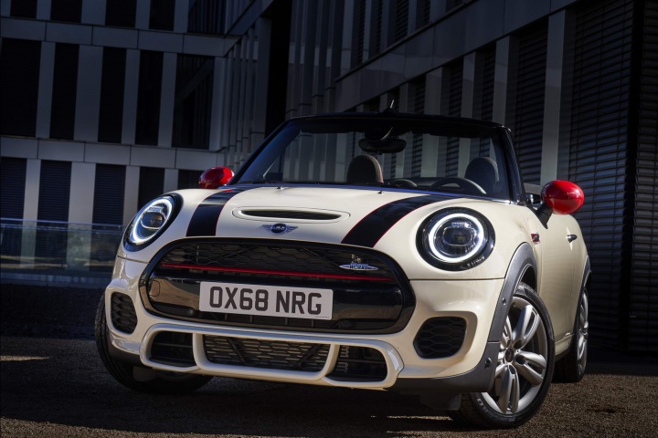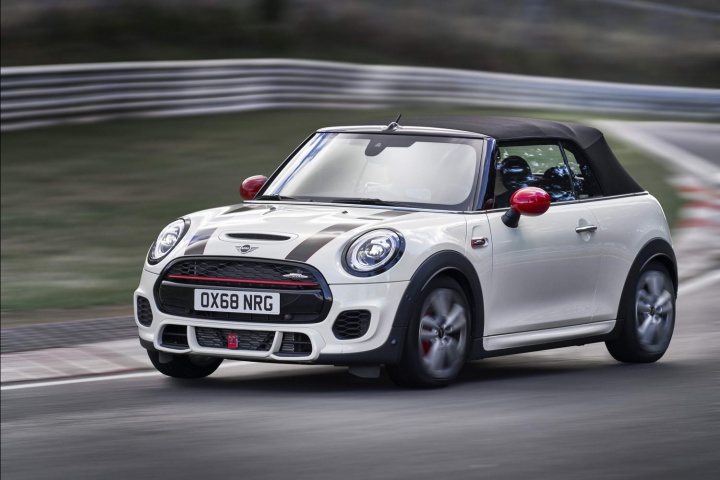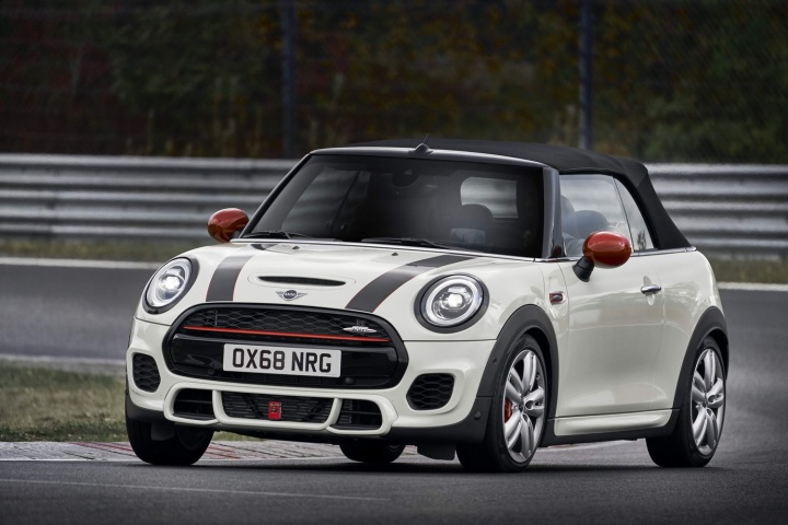The 0-100km/h sprint takes 6.3 seconds for the hatchback and 6.6 seconds for the Convertible. Standard spec includes sports suspension, sports braking kit, 17-inch alloys, John Cooper Works bucket seats and a full John Cooper Works aero kit.