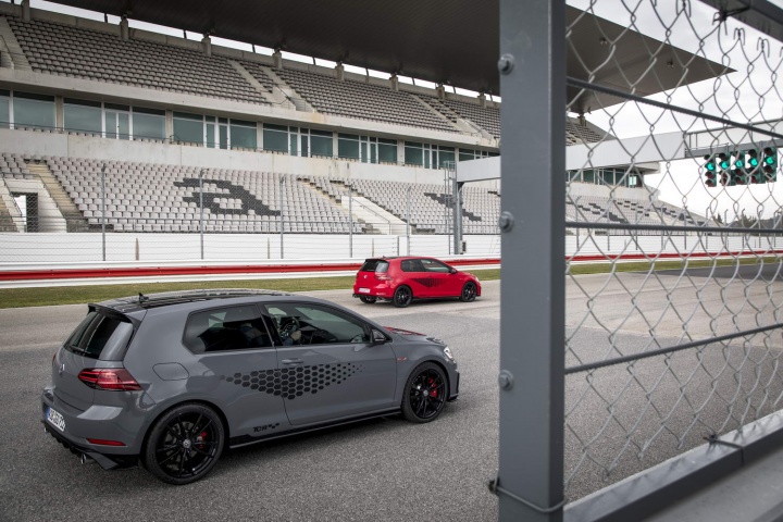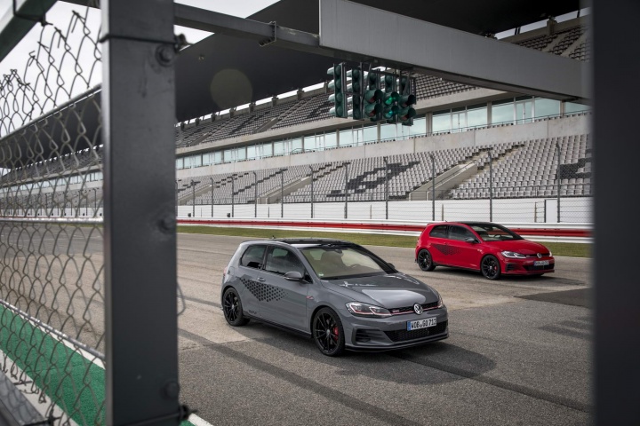 The car's top speed it limited to 250km/h, but buyers can optionally pay to have this limit raised to 260km/h as part of an upgrade package that adds 19-inch 'Reifnitz' alloy wheels in a matt black finish, adaptive chassis control (DCC) and a further reduction in ride height of 5mm over the regular GTI. Both the front and rear shock absorbers also receive a retune. This upgrade pack costs €2,895.
