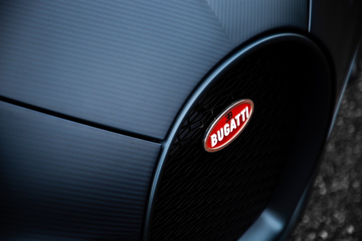 The front end and bodywork of the 110 ans Bugatti are both made of carbon fibre, while the Bugatti radiator is crafted from aluminium. Matte-effect Steel Blue paintwork is said to have a 'sheen like hot-rolled steel', while the C-line surrounding the passenger compartment is finished in the same colour. However, Steel Blue Carbon is used on the exposed carbon-fibre front, so Bugatti says this special Chiron Sport still has its trademark two-tone colour scheme.