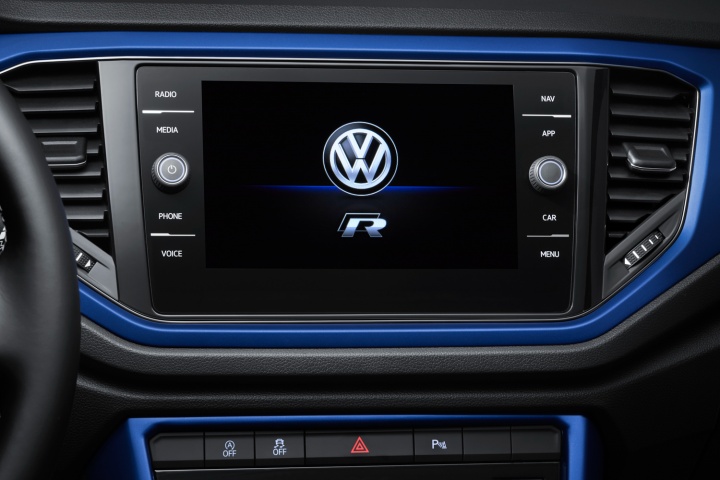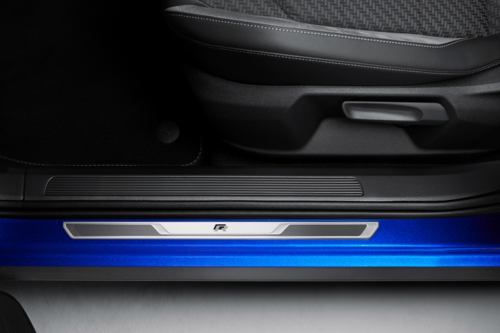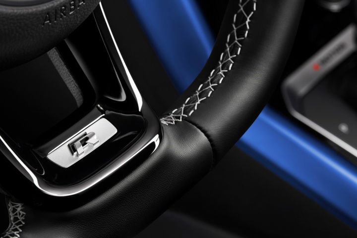 Inside and out, the T-Roc R has the usual fast Volkswagen signifiers, like a large grille with a silver surround, quad exhausts at the back, beefy air intakes, vertical daytime running lights, stainless steel 'R'-branded sill trims, 'R'-logoed seats, a leather multifunction sports steering wheel with paddle shifts, black headlining and contrast stitching in Crystal Grey.