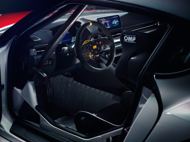 Inside, the GR Supra GT4 Concept boasts a high-strength rollcage, a competition-standard fire extinguisher and OMP racing seat, while a fast refuelling system with a motorsport-spec fuel tank are also fitted.