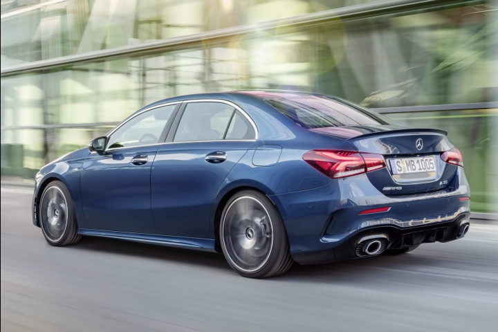 The A 35 Saloon can do 0-100km/h in 4.8 seconds and is electronically limited to 250km/h.
