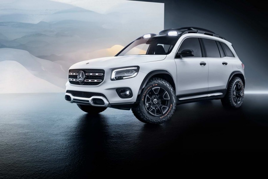 As you can see from the images, while the Shanghai-bound GLB is called a concept, it looks nearly production-ready. The styling fits the current Mercedes template, with Multibeam LED headlamps up front, short overhangs front and rear, contoured shoulder-lines and broad rear lamp clusters. Underbody protection and cladding gives the Concept GLB a rough-and-tumble look, while a 'designo Cashmere White Magno' paintjob makes it look urbane and sophisticated.