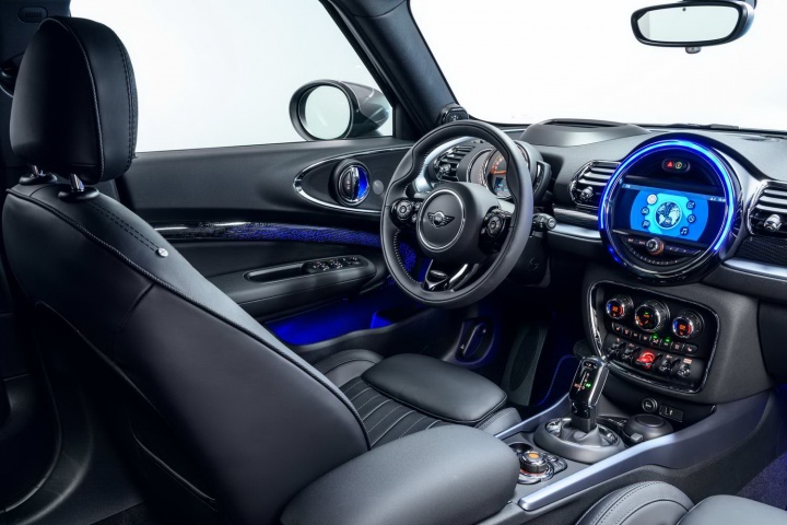 Adaptive LED headlights with a Matrix function are adopted in the Clubman's tech repertoire, while the design of the circular headlamps has been modified. Beyond this, three new colours are added to the palette - these being Summer Red metallic, British Racing Green metallic and MINI Yours Enigmatic Black metallic - while there are some new designs of the larger 18- and 19-inch wheels; standard sizes are 16s and 17s.